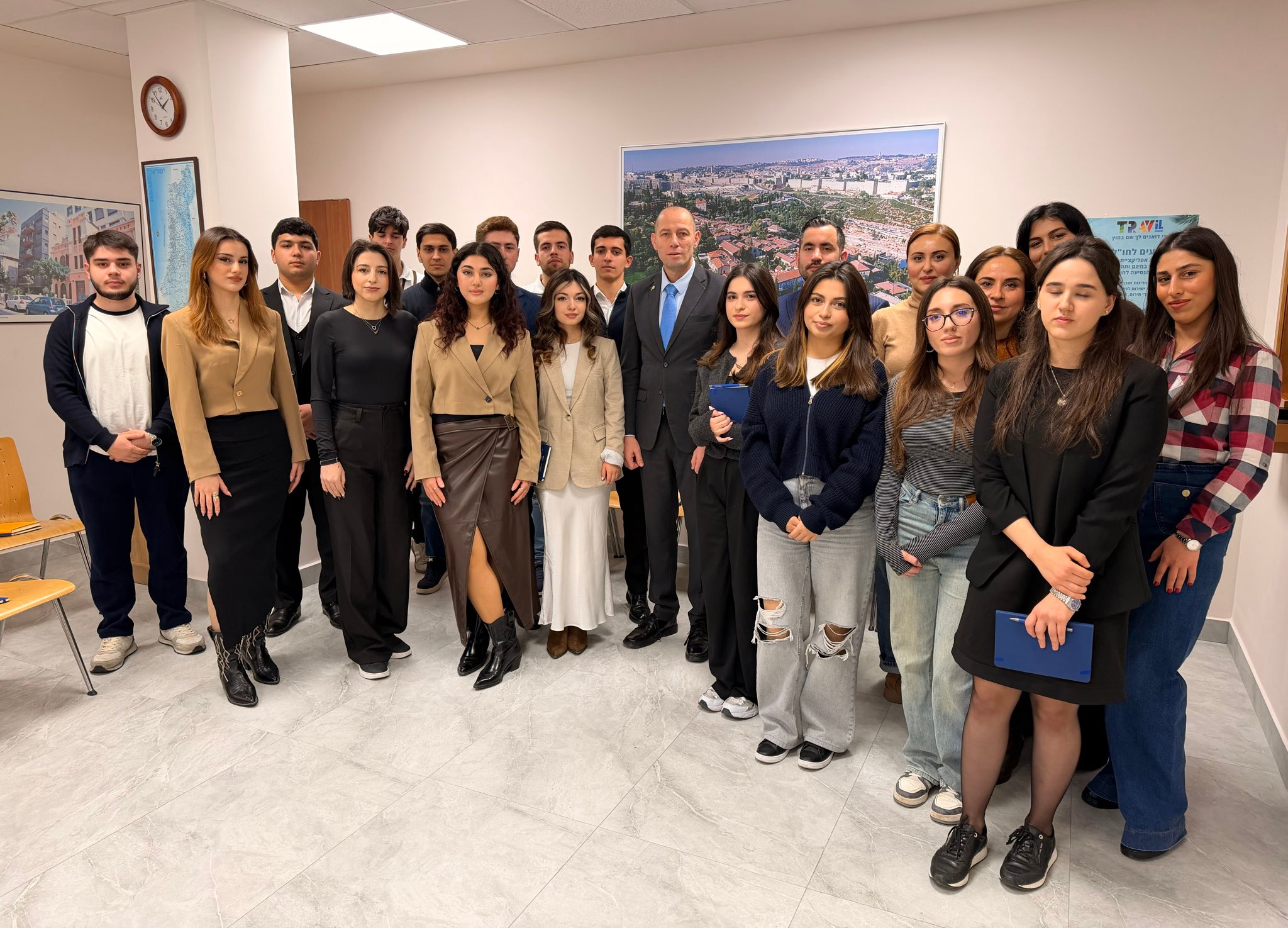 Kanal 20 TV xəbər verir ki, Azərbaycan Dillər Universitetinin (ADU) tələbələri İsrail Dövlətinin Azərbaycan Respublikasındakı Səfirliyini ziyarət ediblər.