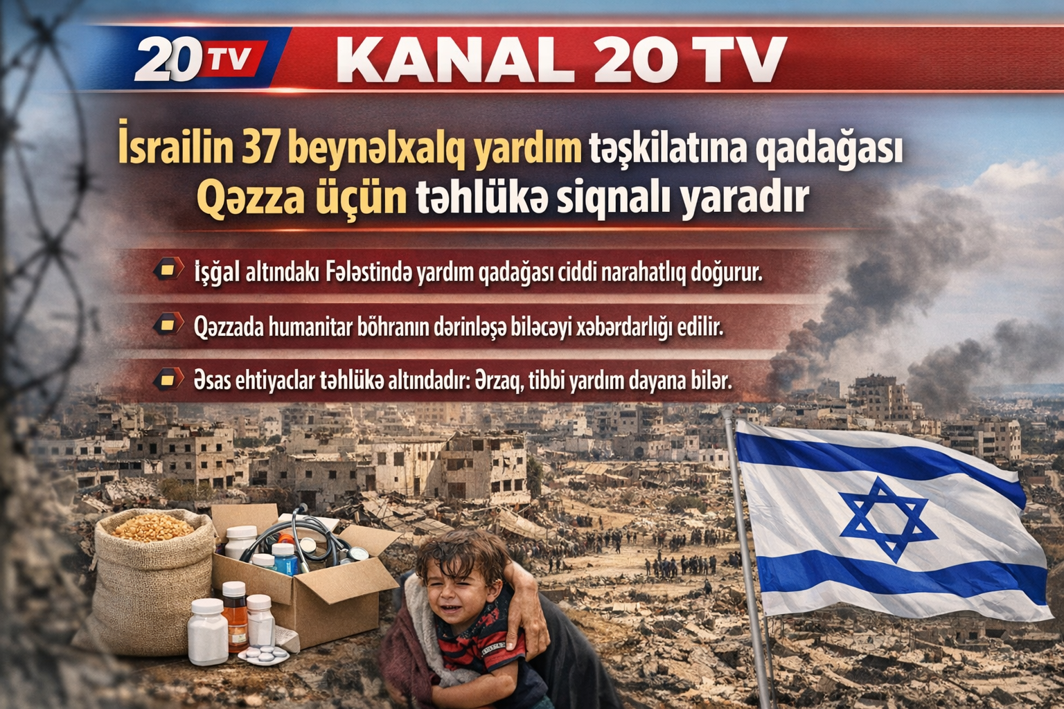 İsrailin 37 beynəlxalq yardım təşkilatına qadağası Qəzza üçün təhlükə siqnalı yaradır