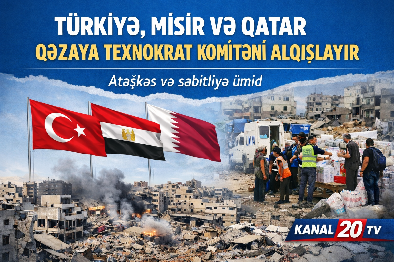 Kanal 20 TV- nin əldə etdiyi məlumata görə Türkiyə, Misir və Qətər Fələstin üçün Qəzada texnokrat komitənin yaradılmasını alqışlayıb. Üç ölkə ümid edir ki, bu təşəbbüs atəşkəsin təmin olunmasına və bölgədə sabitliyin güclənməsinə töhfə verəcək.